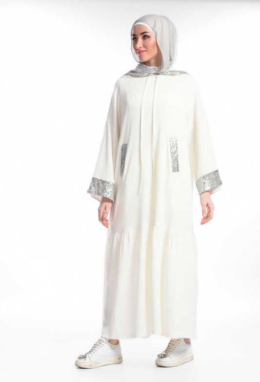 Sold outBeige sequined flowy dress
