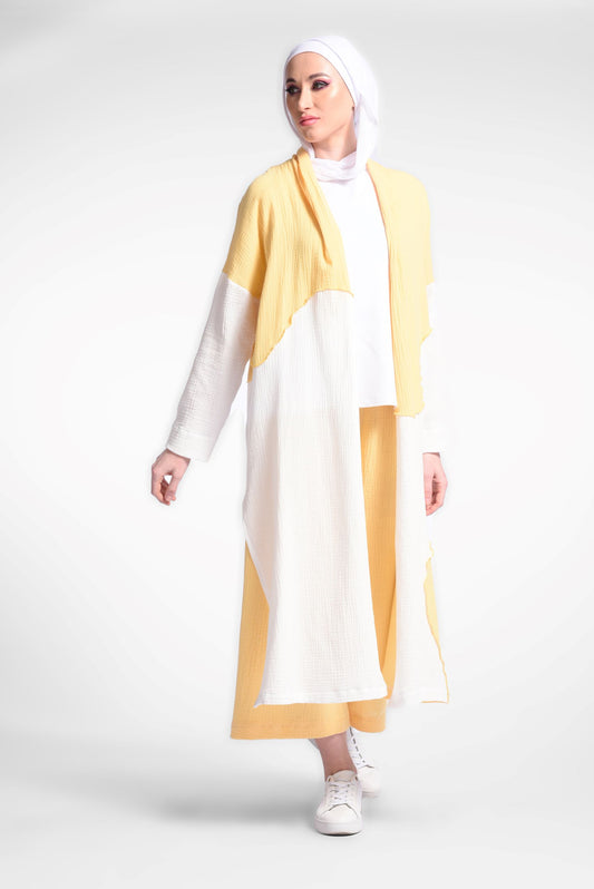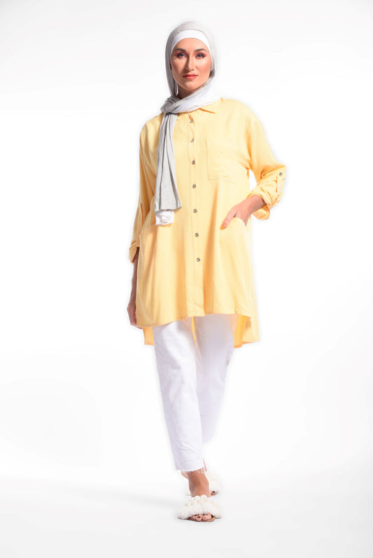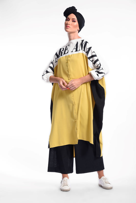 Yellow Oversized Shirt Dress With Batwing Sleeves