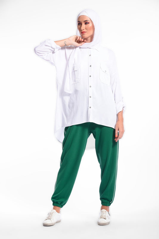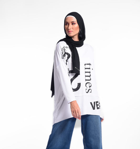 White Round Neck Long Sleeves High-Low Loose T-Shirt