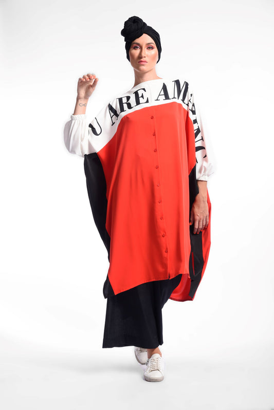Watermelon Oversized Shirt Dress With Batwing Sleeves