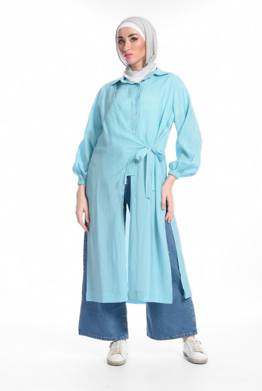 Discover Sublime Elegance with our Blue and Beige Blouse! 🕊️🌊