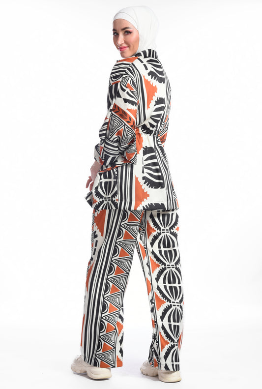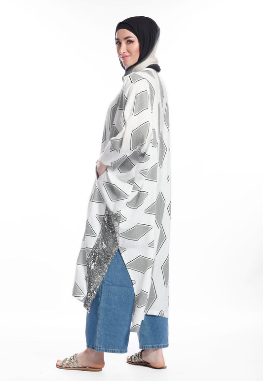 Multicolor graphic long kimono